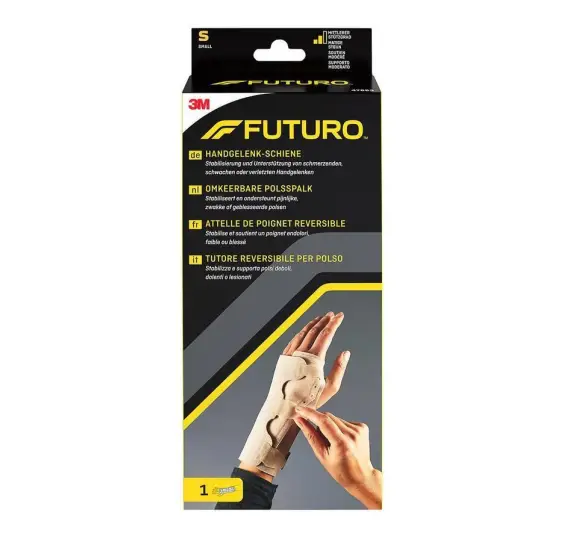 3m Futuro Muñequera Metacarpiana Reversible es una muñequera con férula reversible para la mano derecha o para la mano izquierda que ofrece una sujeción cómoda y estabilizadora para lesiones comunes, como torceduras, esguinces y los síntomas del síndrome del túnel carpiano.