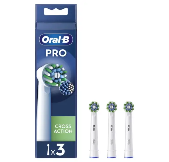El cabezal del cepillo de dientes Oral-B Pro CrossAction cuenta con más de 2200 filamentos perfectamente inclinados para eliminar hasta un 100 % más de placa bacteriana y conseguir unos dientes más limpios y sanos en comparación con un cepillo de dientes manual. Los cabezales originales de Oral-B están diseñados con nuevos filamentos en forma de X que limpian las zonas a las que no llegan los redondos. El indicador de uso del cabezal hace que los filamentos pasen de verde a amarillo para recordarte cuándo debes cambiarlo y mantener el 100 % de eficacia en la limpieza. Ajuste garantizado con cepillos de dientes eléctricos recargables de Oral-B, excepto con los cepillos de dientes iO y Pulsonic.