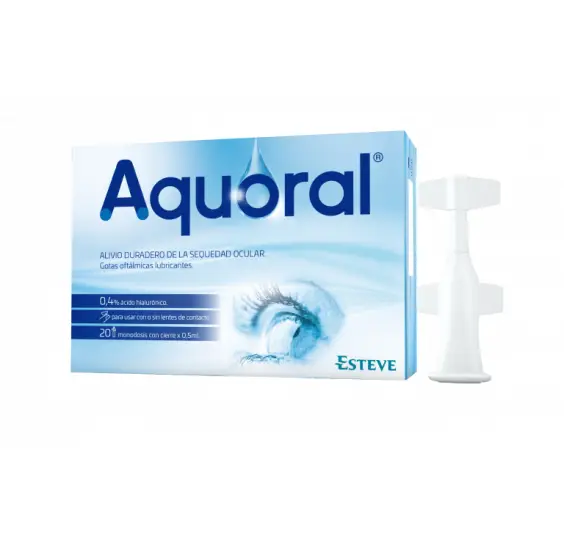 Aquoral se presenta como una solución de gotas oftálmicas en 20 monodosis con cierre para uso diario.