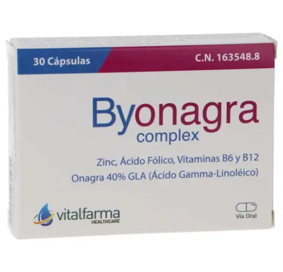 Contiene Onagra Microencapsulada 40% GLA (Ácido gamma-linolenico), Zinc y Vitaminas B6, B9 y B12.