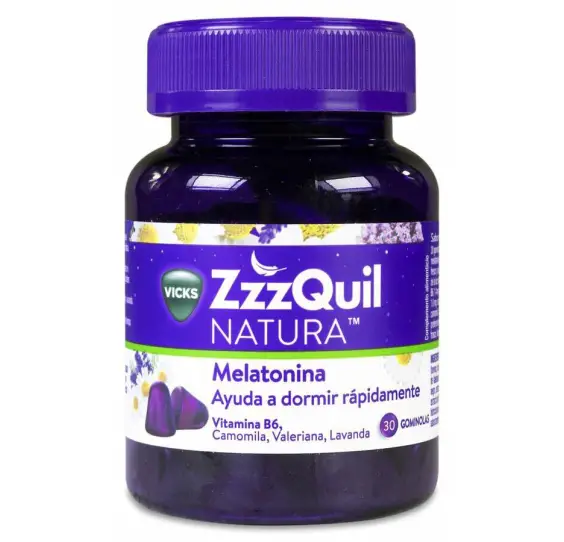 El complemento alimenticio para ayudar a dormir de ZzzQuil NATURA contiene melatonina, una hormona natural que ayuda a conciliar el sueño rápidamente.